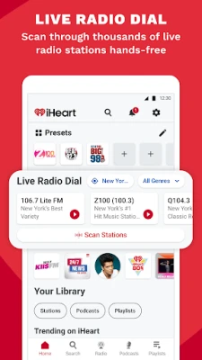 Listen to thousands of live radio stations and stream unlimited free music playlists for any mood or activity. Global hits or new releases: play ad-free music and enjoy a wide selection of songs. Stream songs, trending podcasts and live sports for free on any device. Enjoy your favorite free music and podcasts on the go by pairing the iHeart Radio app with Apple CarPlay and Android Auto to listen to your favorite travel music playlists during your next drive.