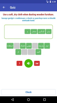 - Support multiple languages (Translate from 32 languages to Persian) - Quiz game (choose correct answer and rearrange these words to make meaningful sentences) will improve word and phrases - Perfect search and manage your favourite items system - No internet connection required