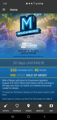 The official Mile of Music app provides information on all of the 200+ artists, 700+ concerts and 40+ venues that make up Mile of Music.