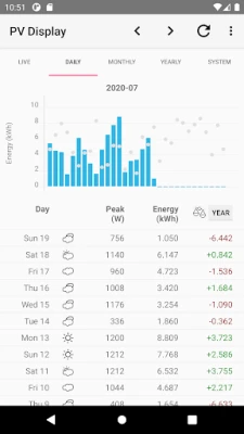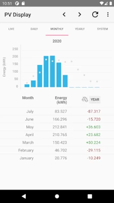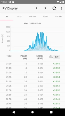 PV Output Display is an app to view data on the PV Output website. You can view live solar panel data and browse through historical data. The data is presented in five different tabs in both graphical and tabular form. Compare data with previous time ranges.
